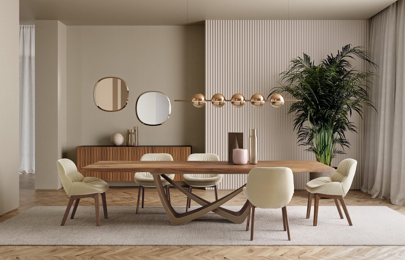 The Bach dining table defines contemporary luxury with its sculpted, angular base designed to stand out as an architectural focal point. Available in a range of veneer, solid wood and metal finishes, it elevates any dining space with effortless sophistication.