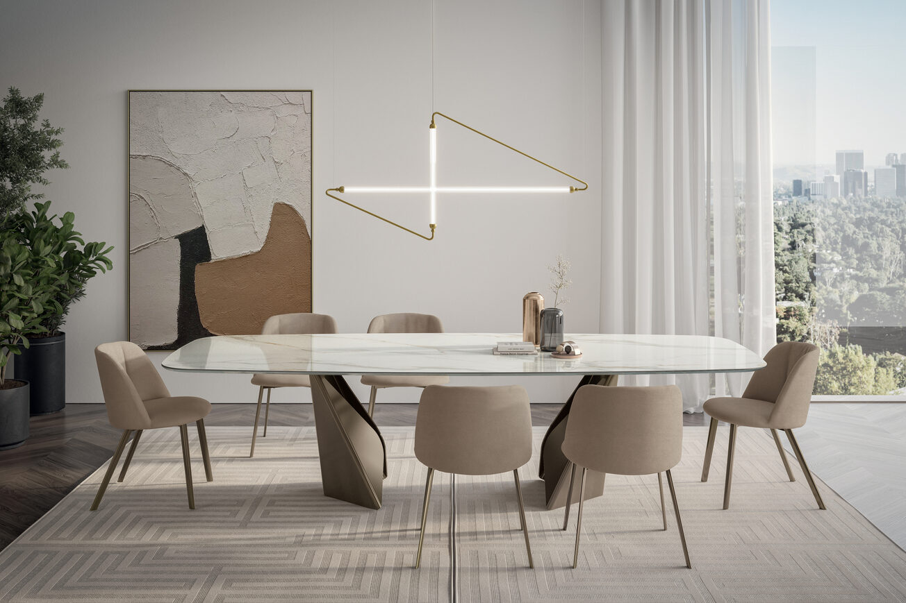 The Kaleido dining table is also available in a fixed round top and extendable version.