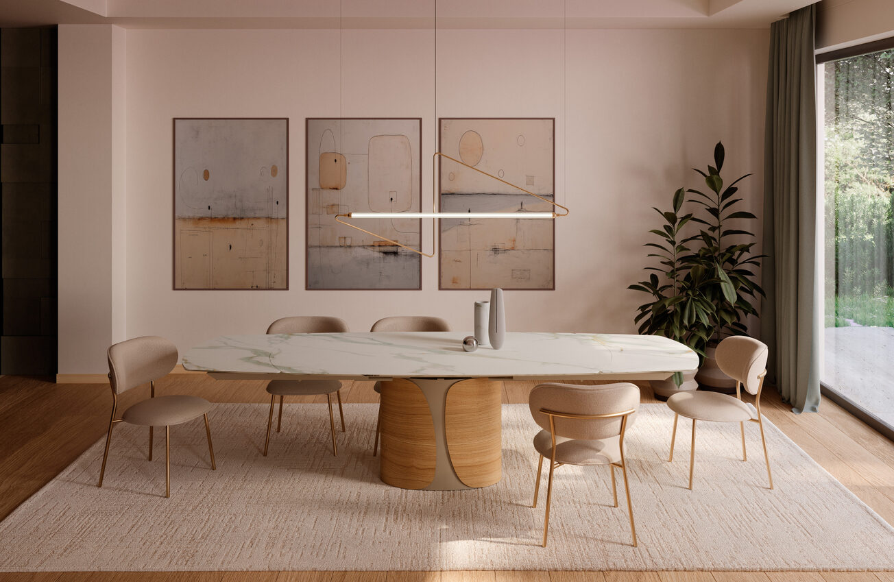 The Talos dining table is also available in a Fixed top version.