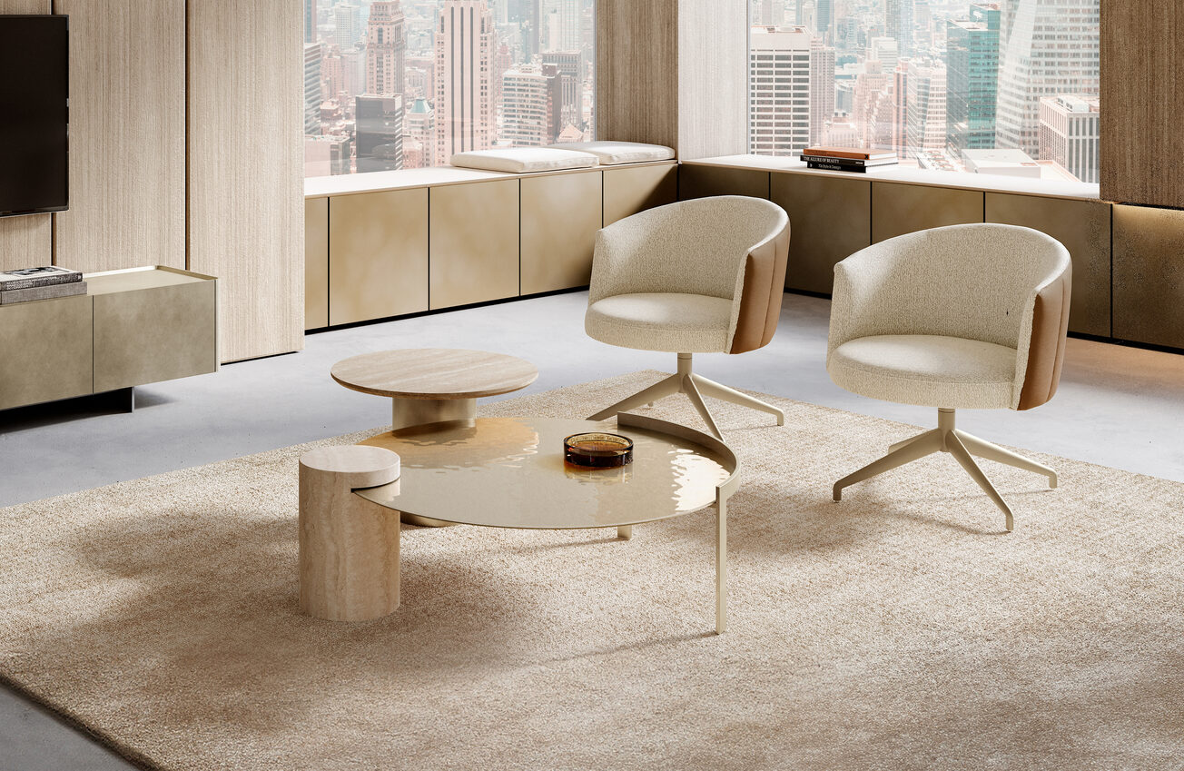 The Peo coffee table design is a luxurious addition to your home and comes in many variations. The refined painted metal profile that supports the round and rectangular shaped glass top makes it the ideal solution for those looking for a designer coffee table.