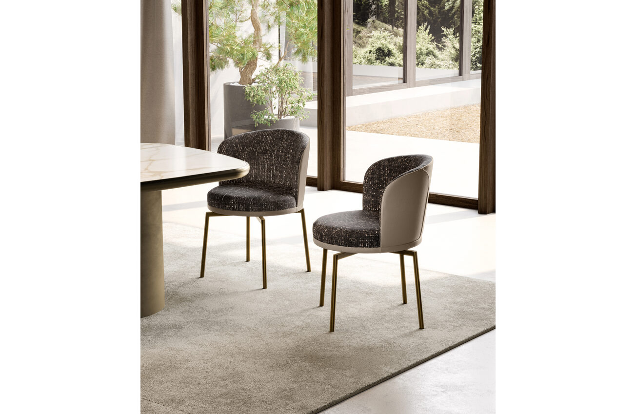 The ginger chair with metal legs is an upholstered chair with a classic style reinterpreted in a modern key. The elegant metal leg base ensures stability and durability, guaranteeing the chair's longevity.